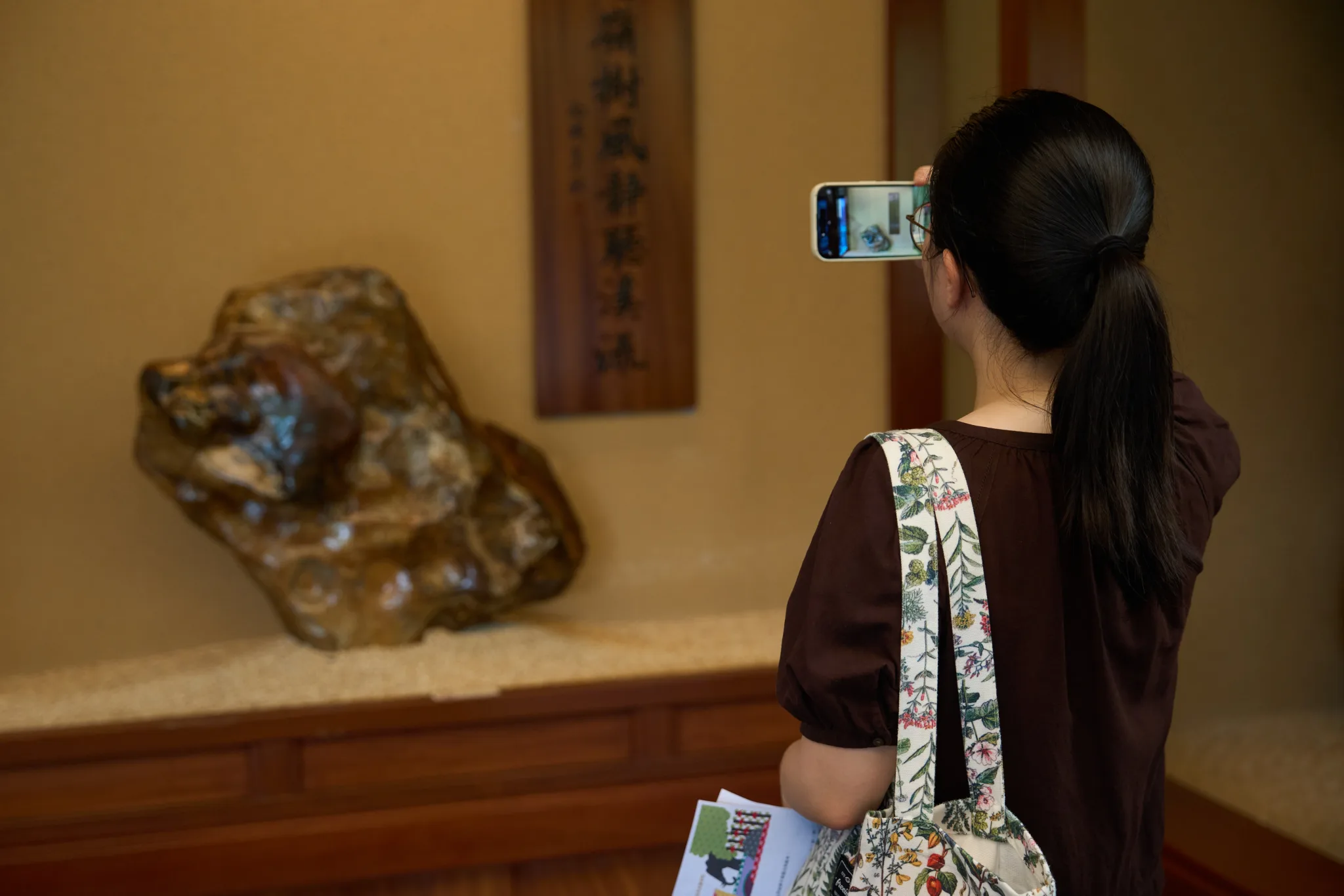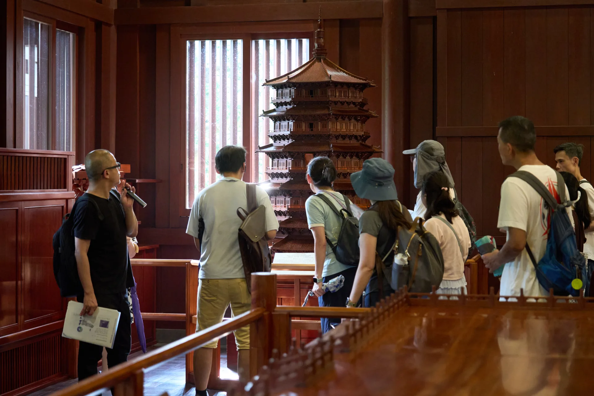 南莲园池以唐代园林布局及建筑为蓝本,与毗邻的志莲净苑同样仿照唐代木结构而建,组成一个融合中日建筑特色的佛寺园林。其中位于池畔的松茶榭,是一个唐风木构水榭建筑形式的茗茶空间。参与者将在此品茗,体验传统茶文化。